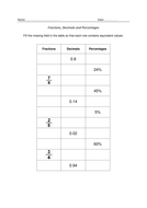 Fractions Decimals And Percentages Worksheet Teaching Resources